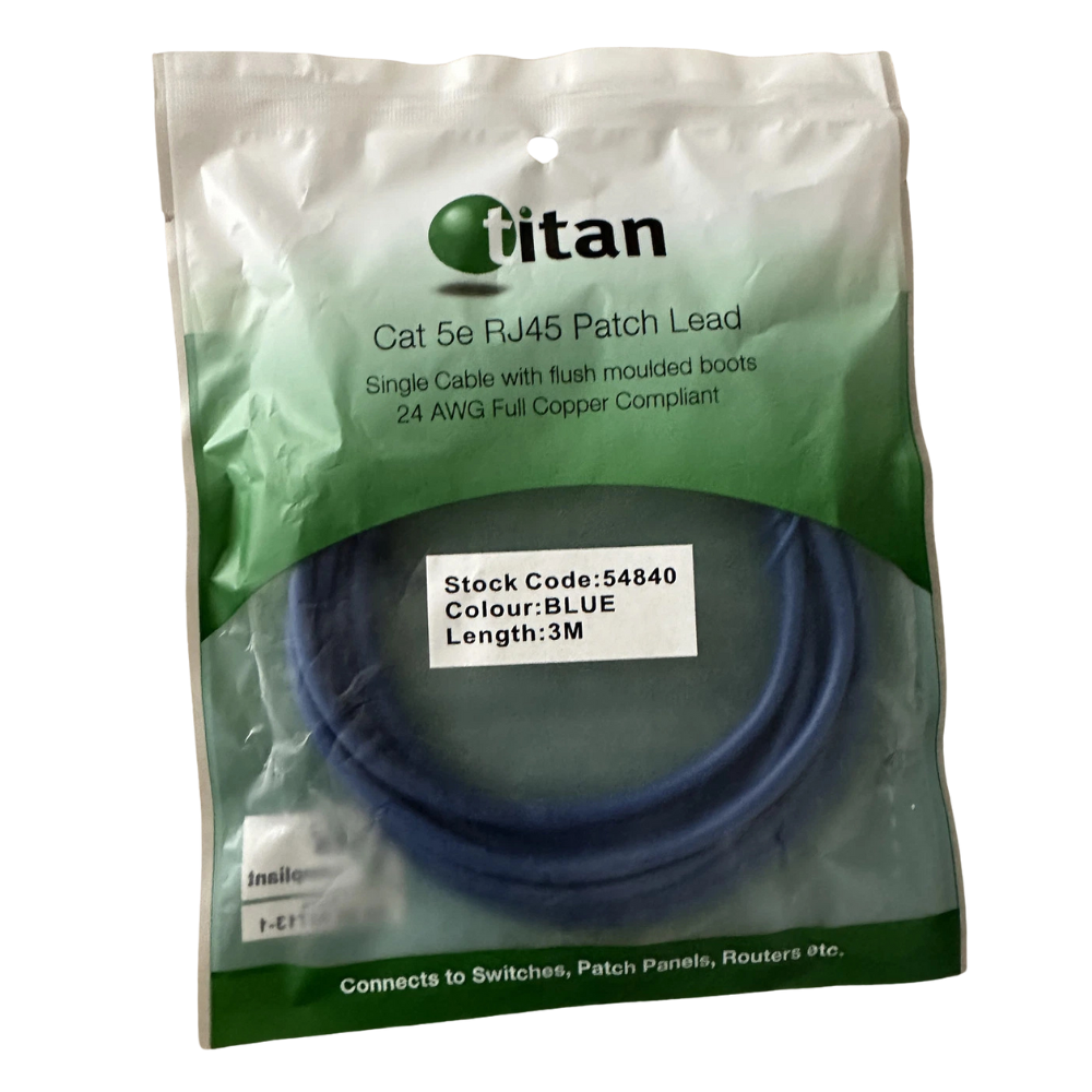 Ensure fast and dependable network performance with the Titan Cat 5e RJ45 Patch Lead. Designed for reliable Ethernet connectivity, this high-quality cable supports stable data transfer for internet, gaming, streaming, and office networks. With durable construction and secure RJ45 connectors, it delivers consistent performance in home or business setups. Perfect for connecting routers, switches, computers, and more, the Titan Cat 5e patch lead keeps your network running smoothly.